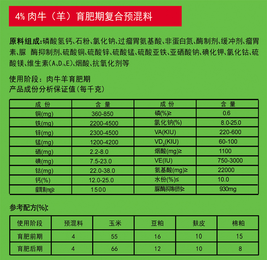4%肉牛羊育肥期復(fù)合預(yù)混料